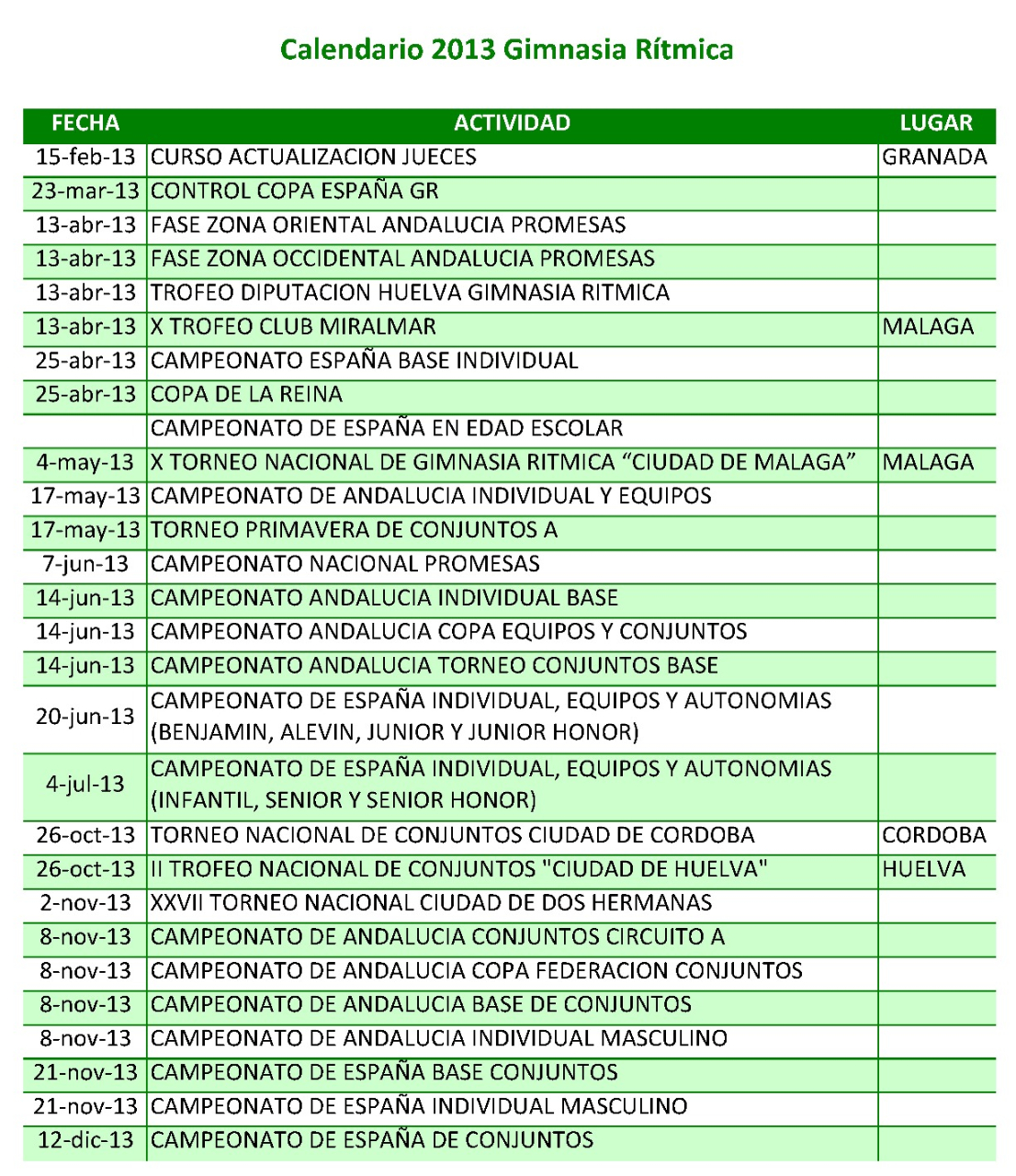 calendario andalucia 2013